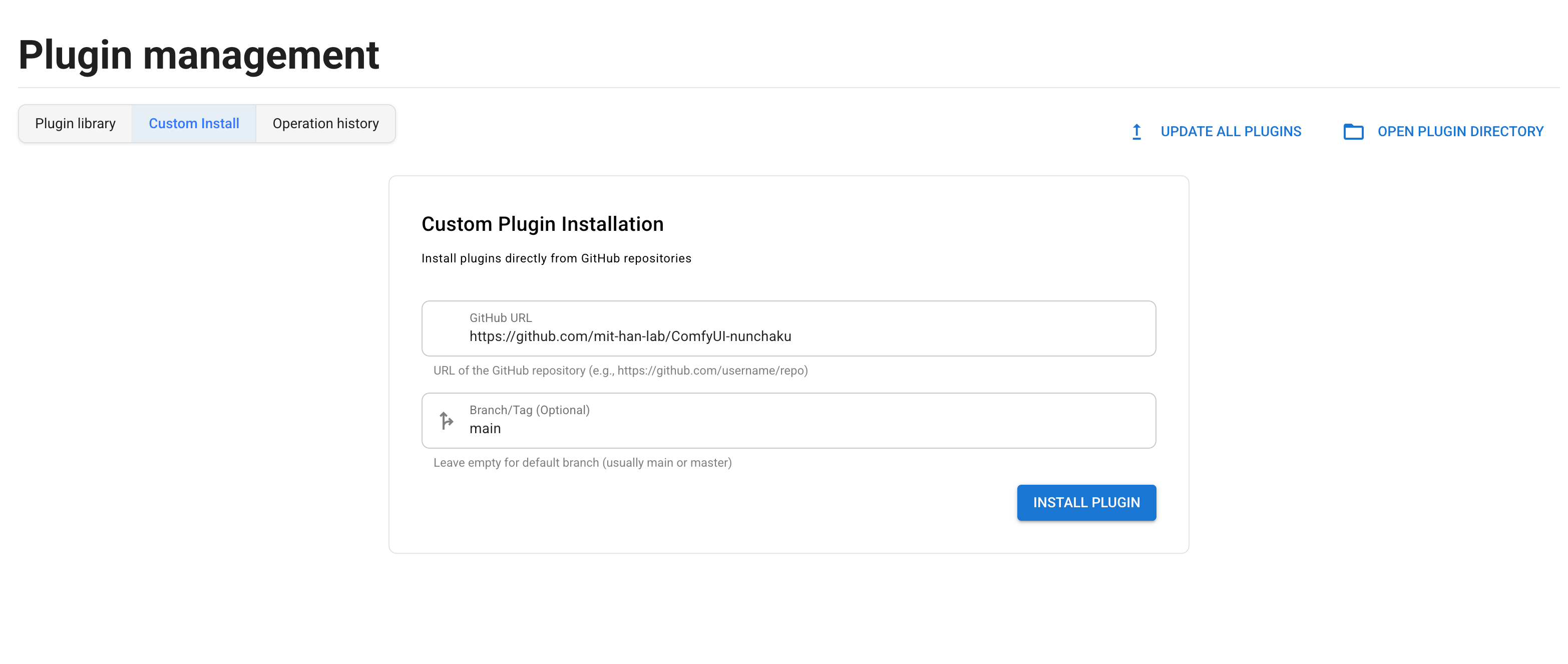 2. 在GitHub URL里输入ComfyUI Nunchaku的项目地址