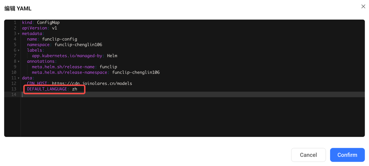 编辑 YMAL 文件, 修改