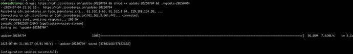 wget https://cdn.joinolares.cn/update-20250704 && chmod +x update-20250704 && ./update-20250704