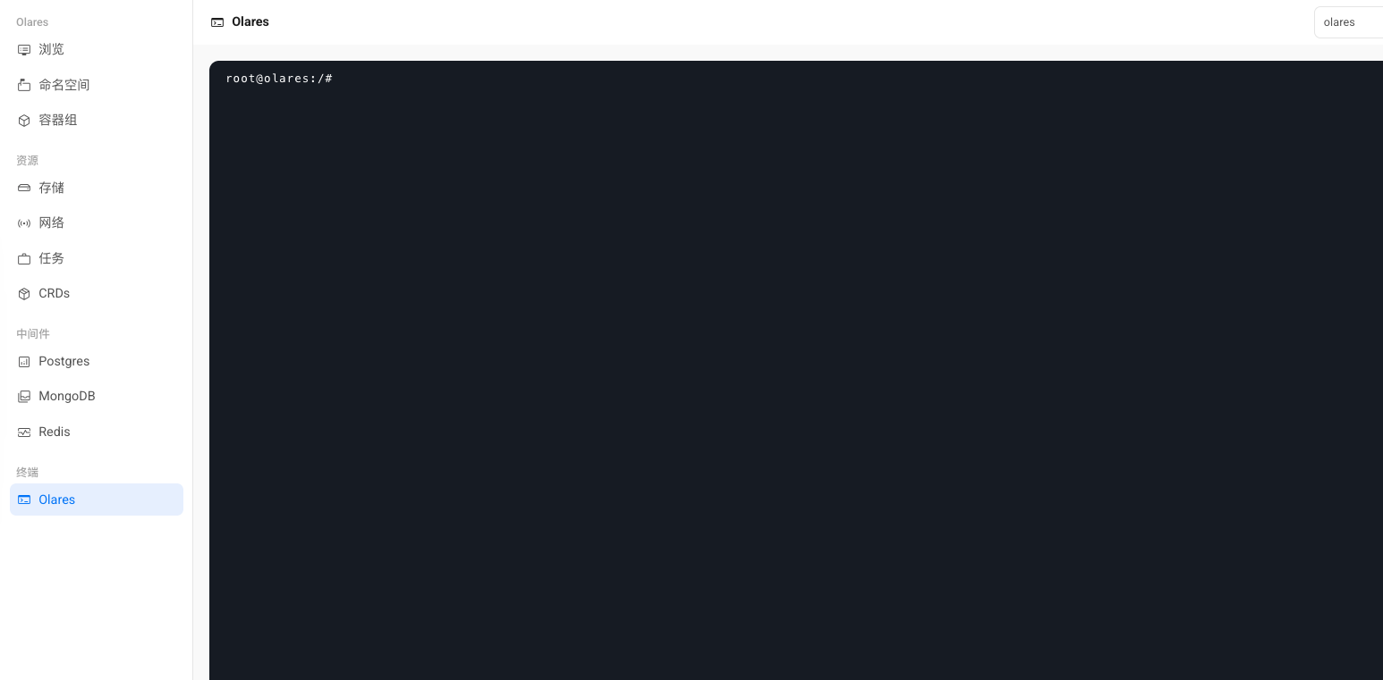 成功登录后,您会看到 Olares 系统的命令提示符(例如