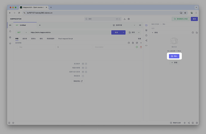 在右侧集合面板点击导入 > 从 Hoppscotch 导入,然后选择刚刚下载的
