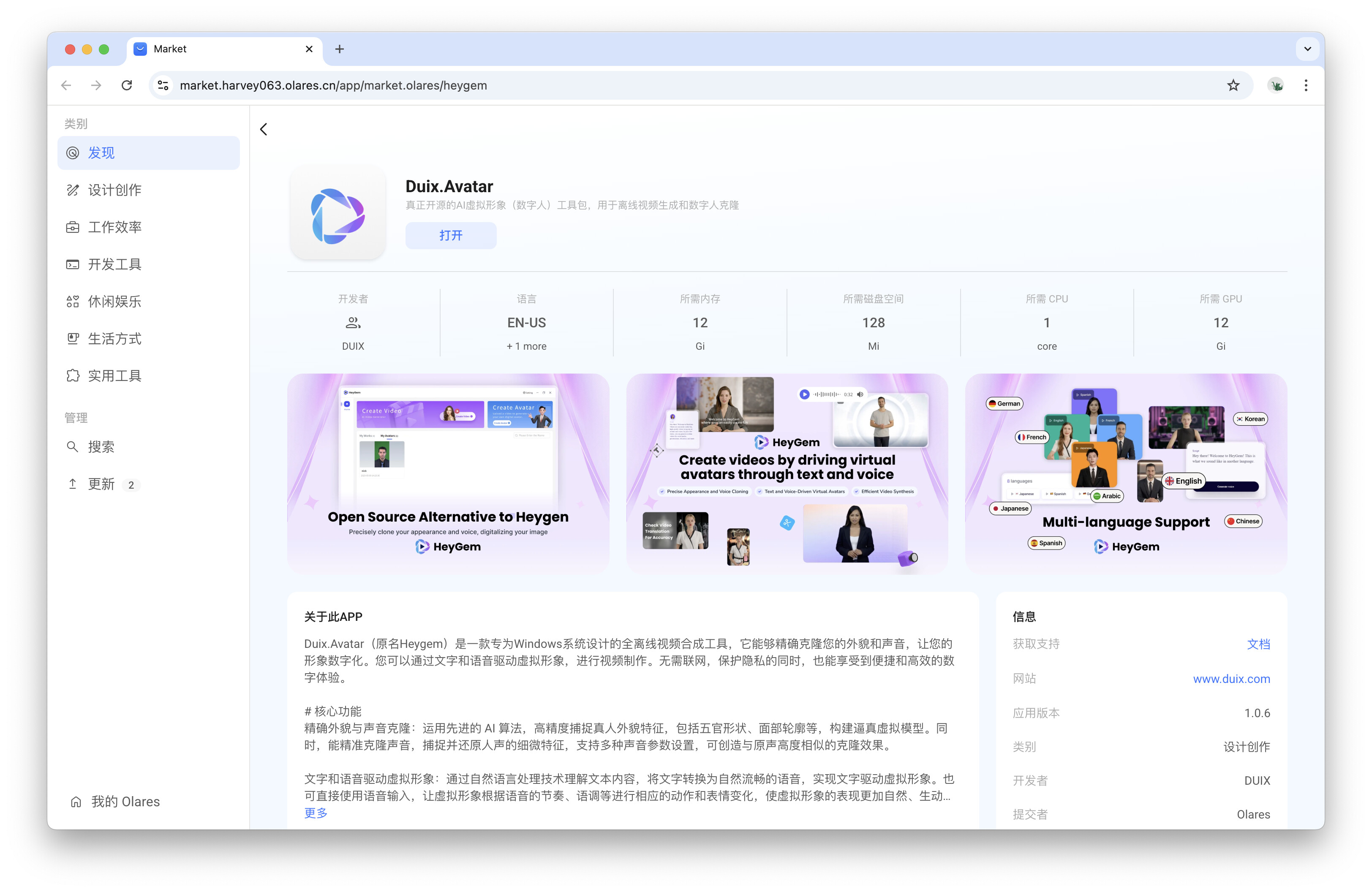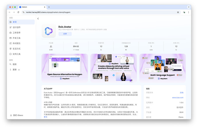 Duix.Avatar(前身为 Heygem 项目)是一个开源的 AI 数字人生成工具包,专注于离线视频生成和数字人克隆。通过本教程,你将学习如何在 Olares 平台中部署和使用 Duix.Avatar,完成从模型训练到视频合成的全过程,最终生成由文本驱动的数字人视频。