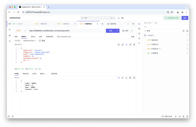 现在,我们将依次调用四个 API 来完成数字人视频的生成。