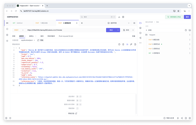 reference_text:填入上一步“模型训练”响应中获得的reference_audio_text值。 -