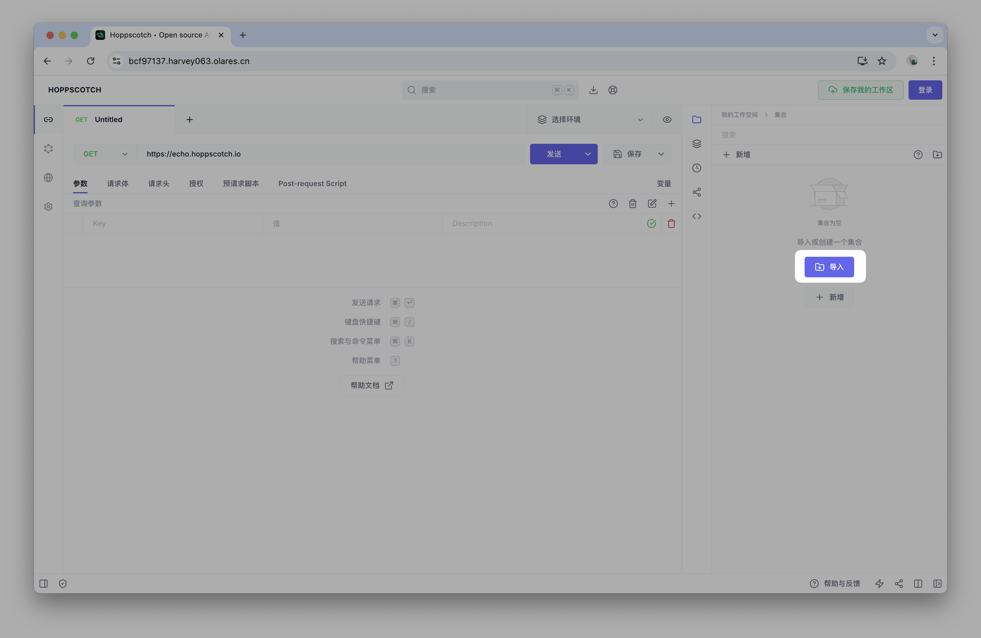 为了方便调用,我们提供了一个预设的 Hoppscotch API 集合。
