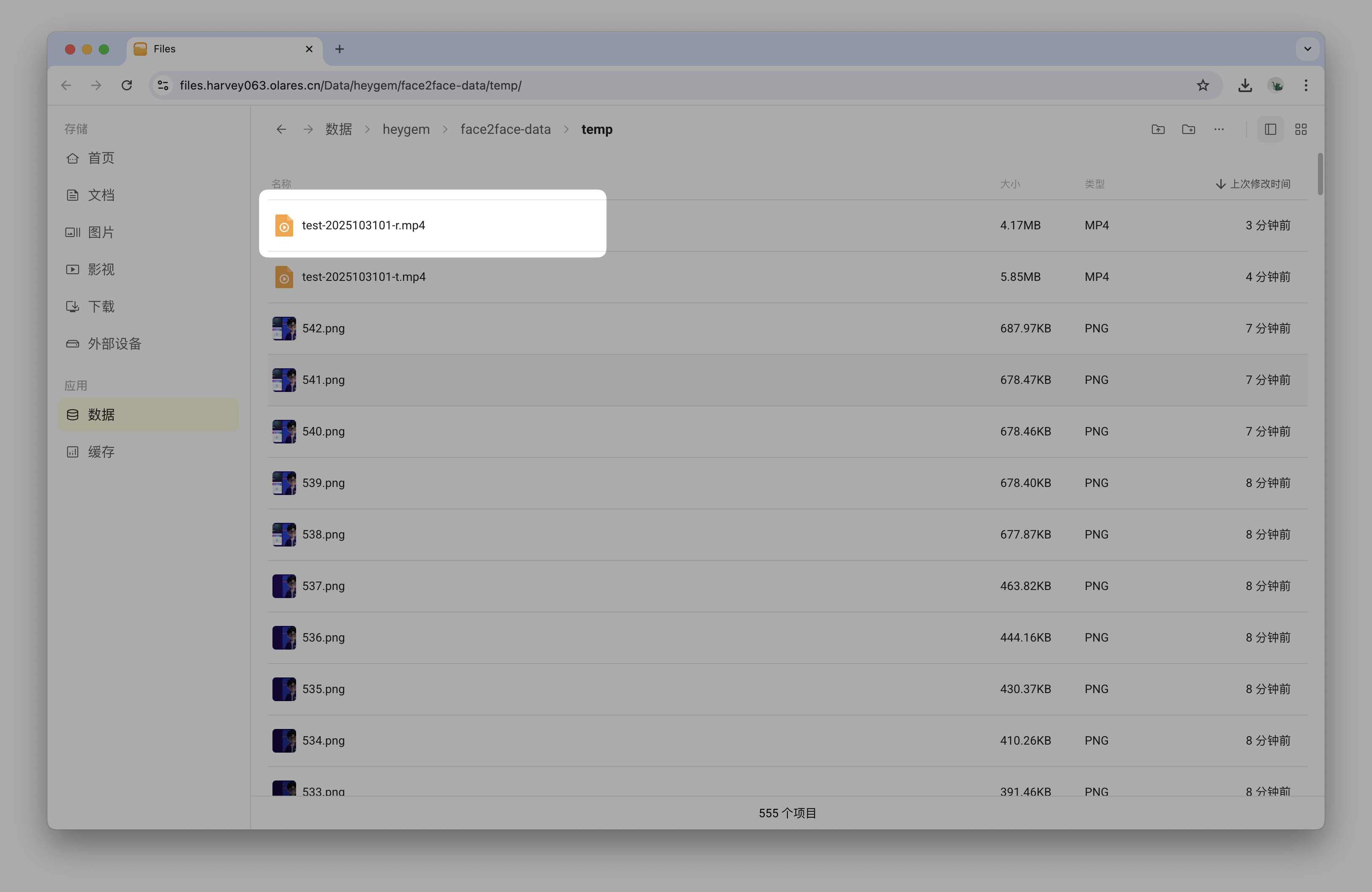 result字段会指明输出视频的名称。你可以在 Olares 文件管理器中找到生成的最终视频文件,文件路径为:/数据/heygem/face2face-data/temp/