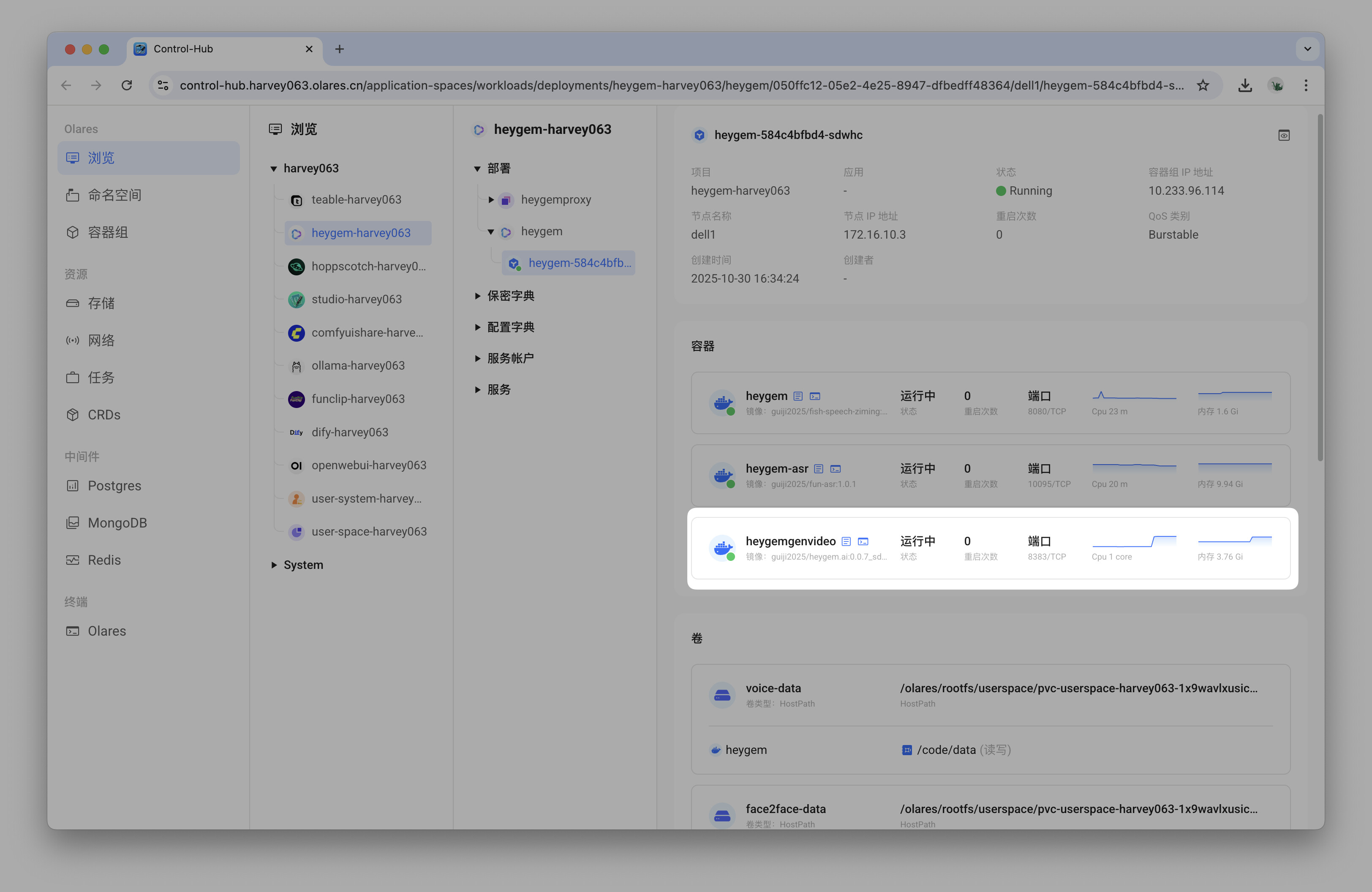 如果查询进度长时间停滞不前,或 API 返回错误,前往 Olares 控制面板,找到名为heygemgenvideo的容器,并查看其日志,以获取详细的错误信息。
