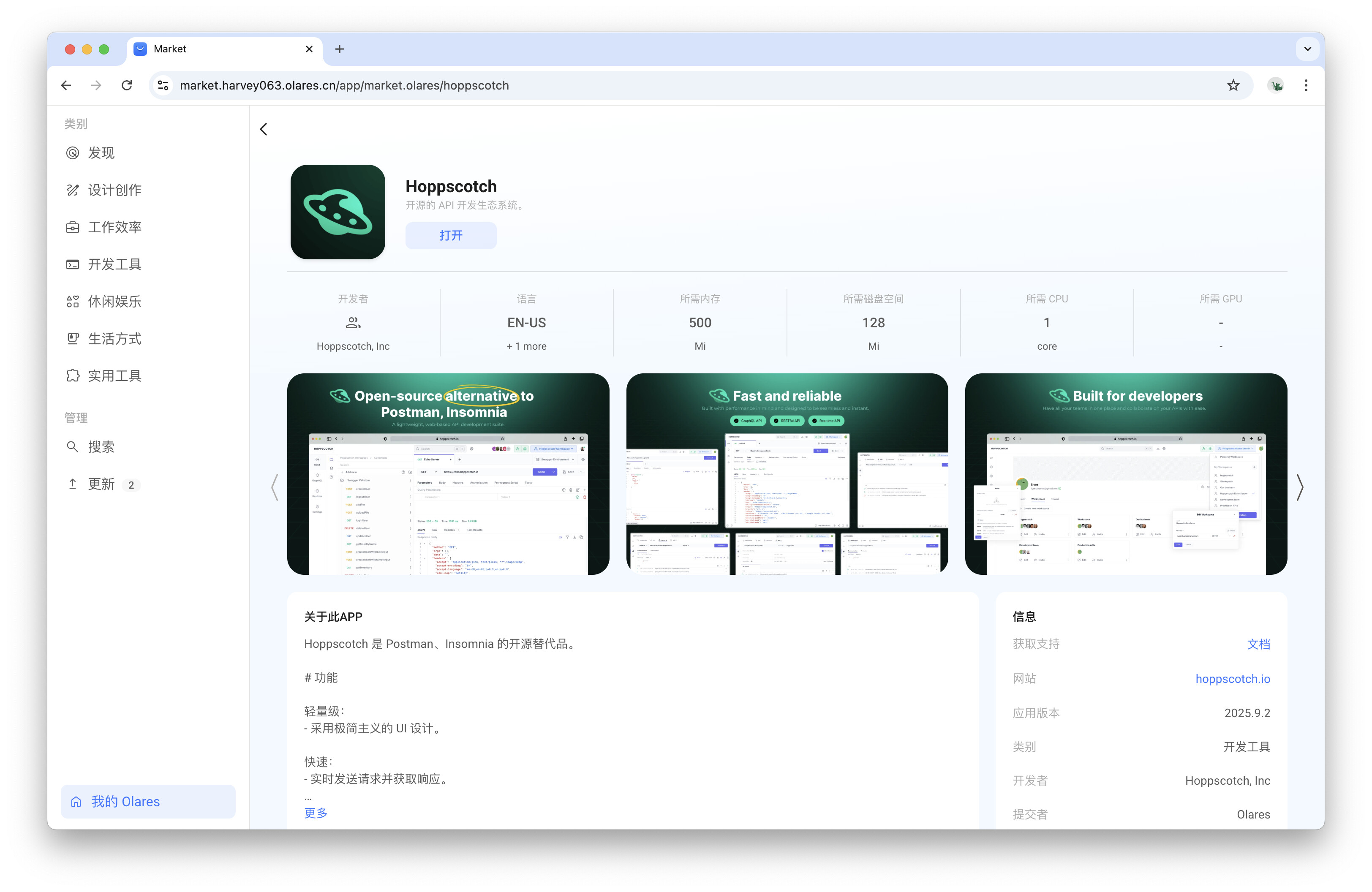 在 Olares 中打开已安装的 Hoppscotch 应用。