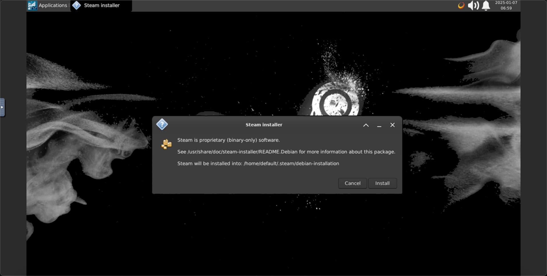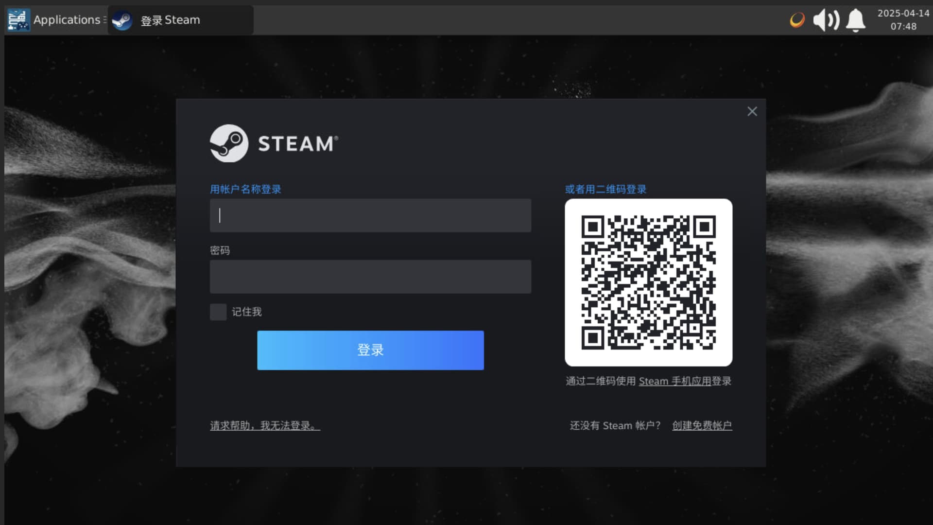 由于国内网络环境限制,Steam 客户端安装和更新可能失败,此时可从 Steam Headless 控制台左上角进入 Applications > Internet > Steam 以重新安装。多次尝试一般可以成功。