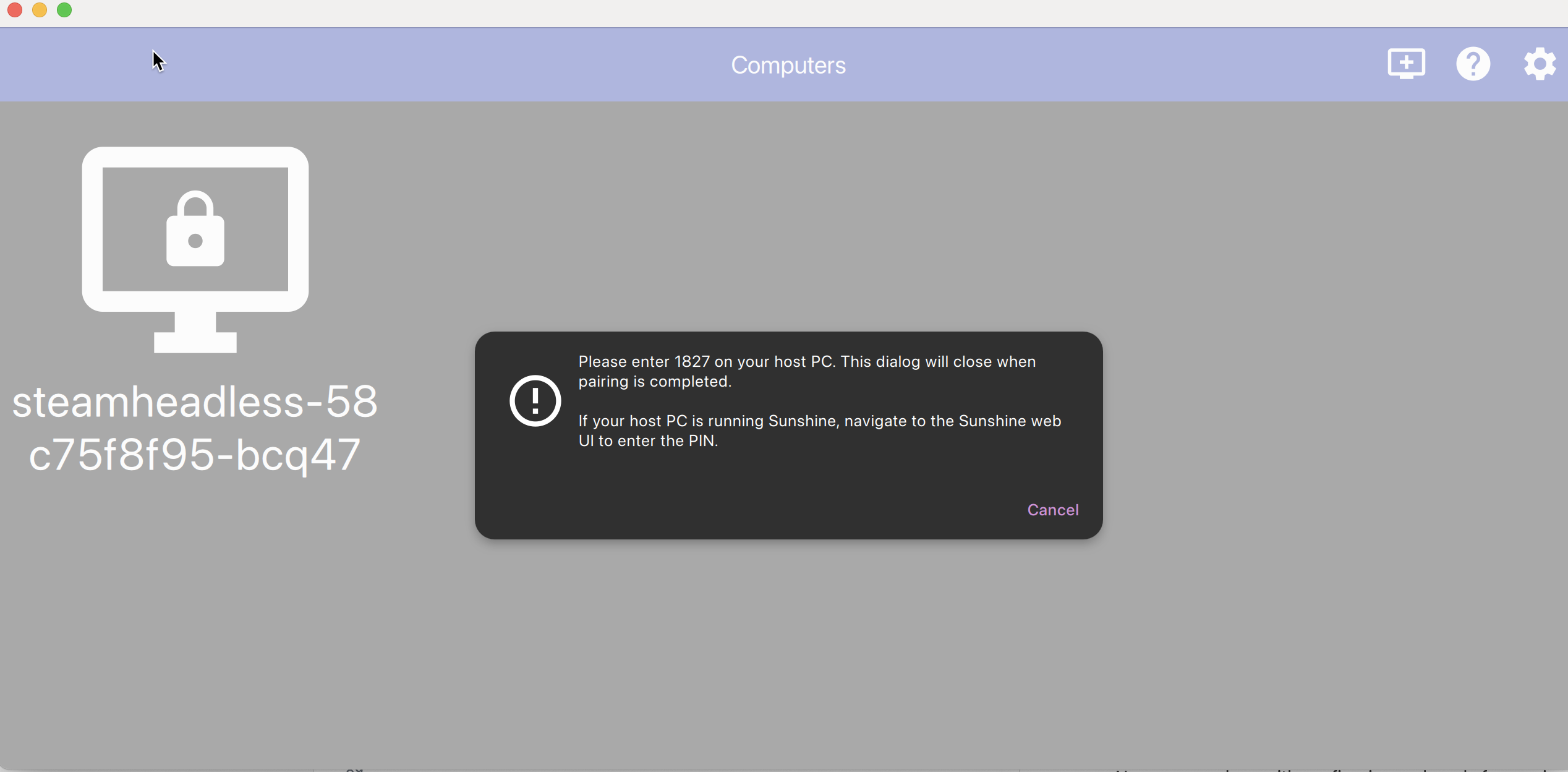 Steam Headless 集成了 Sunshine 串流服务器。要使用 Moonlight 客户端串流,还需在 Moonlight 上将游戏主机与 Sunshine 配对。