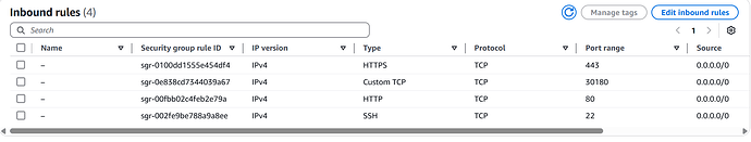 入方向:开启80、443、30180给所有的IPv4以及IPv6,22端口您可以基于您的固定IP进行设置。