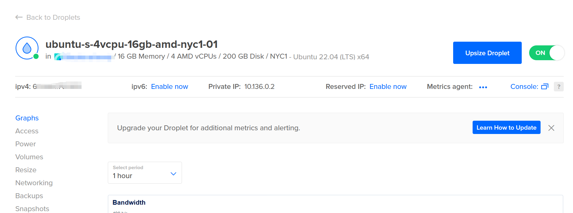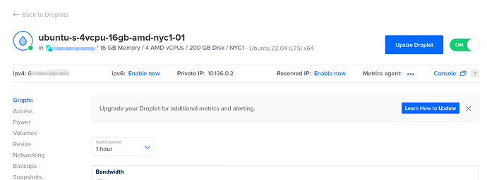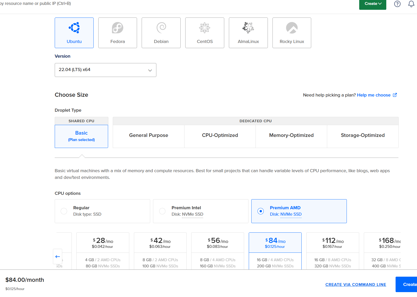 - 直接创建一个Droplets,如下图,系统选Ubuntu 22.04 LTS,类型你可以选基本款,4核16G即可(AMD内核相对便宜些)。