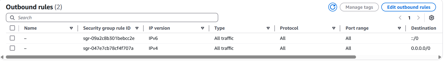 出方向:开启所有流量到所有地址